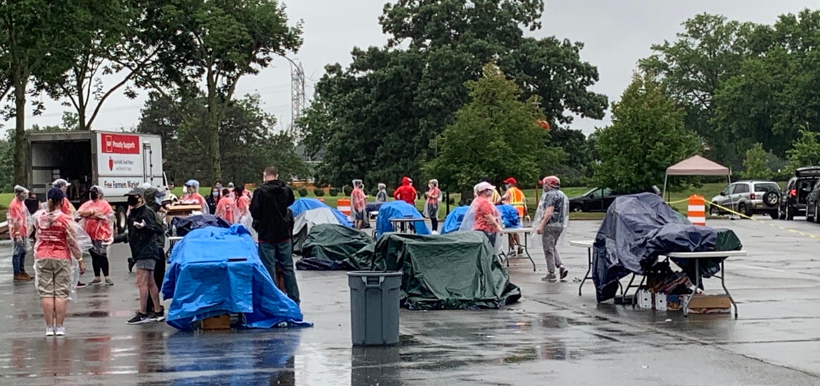And so they did. GAF Community Engagement Manager Arlene Marks took the reins and, with input from GAF Facilities and Hawk Logistics, architected a first-of-its-kind drive-through Free Farmer's Market. The Market opened on June 12 for registered IFP clients, and proved an immediate success, serving around 500 households while maintaining good COVID practices including masks, gloves, hand sanitizer, and social distancing.