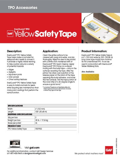 Made up of 30-mil unreinforced TPO and used to provide a warning to take caution around potential roof hazards. Easy to install, built to last for years, and requires little maintenance.