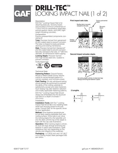 The Drill-Tec™ Locking Impact Nail is tube shaped to easily penetrate decking and existing membranes.