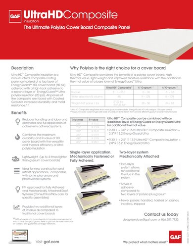 A non-structural composite roofing panel comprised of a top layer of EnergyGuard™ HD cover board (80 psi) adhered with a high-tack adhesive to a second layer of EnergyGuard™ Ultra polyiso insulation (20 psi). Both components have CGF facers for increased durability and mold resistance.