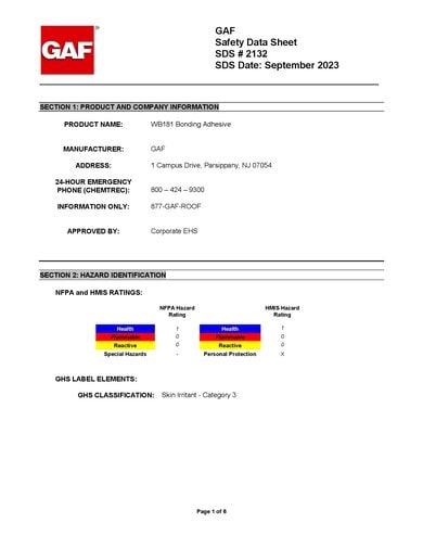 EverGuard WB181 Bonding Adhesive SDS - 2132