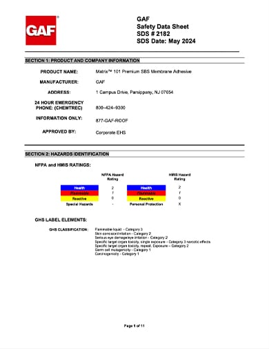 MATRIX™ 101 Premium SBS Membrane Adhesive SDS - 2182