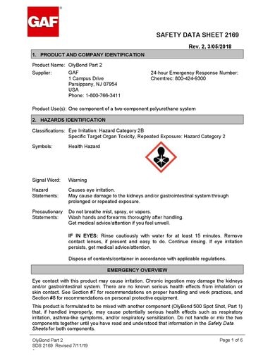 OlyBond500™ Adhesive Fastener Part 2 SDS - 2169