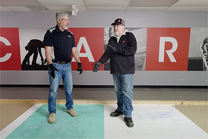 At the end laps, unroll and lay a second roofing membrane roll over the roofing substrate so that the second roofing membrane overlaps the first roofing membrane about 3” for smooth TPO.