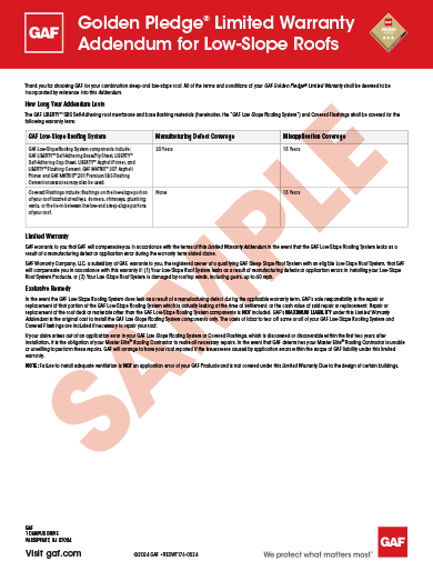 1See Limited Warranty on LIBERTY™ SBS Self-Adhering Materials for complete coverage and restrictions.