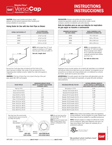 Master Flow™ Versa Cap Adjustable Pipe Cap helps protect rooftop flues, hot stacks, and B-vents. The adjustable design offers convenient installation with a screwdriver-adjustable clamp to ensure a tight fit. Aluminum construction helps resist rust that can detract from the look of your roof and provides a neat, finished appearance. Positive draft design helps reduce the risk of clogging. A large selection of sizes is available to fit pipes with outside diameters ranging from 2 7 ∕8" up to 10 7 ∕8".