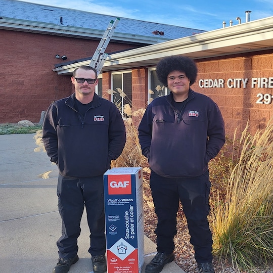 GAF Cedar City y Stout Roofing donaron e instalaron sistemas de techo nuevos y muy necesarios para apoyar a la Asociación de Bomberos de Cedar City.